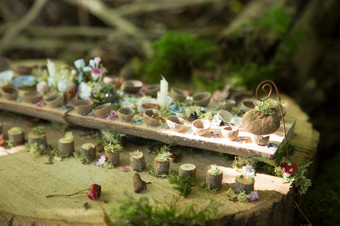 Foraged wood fairy door with stepping stones, magic fairy dust and toadstool.